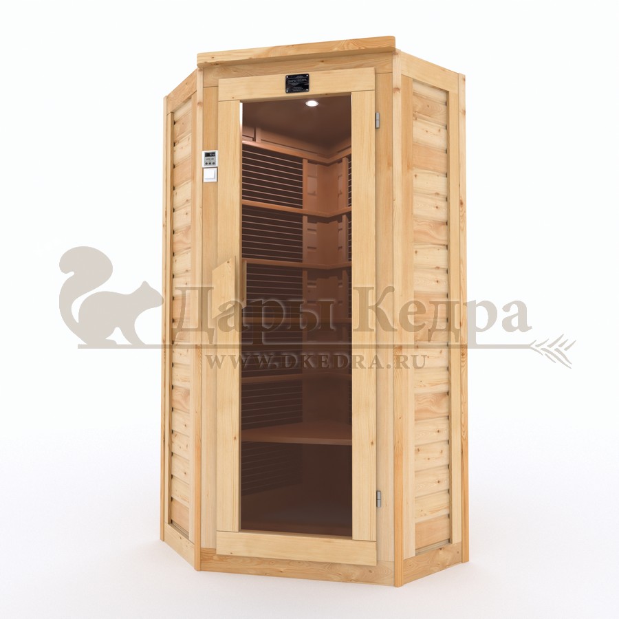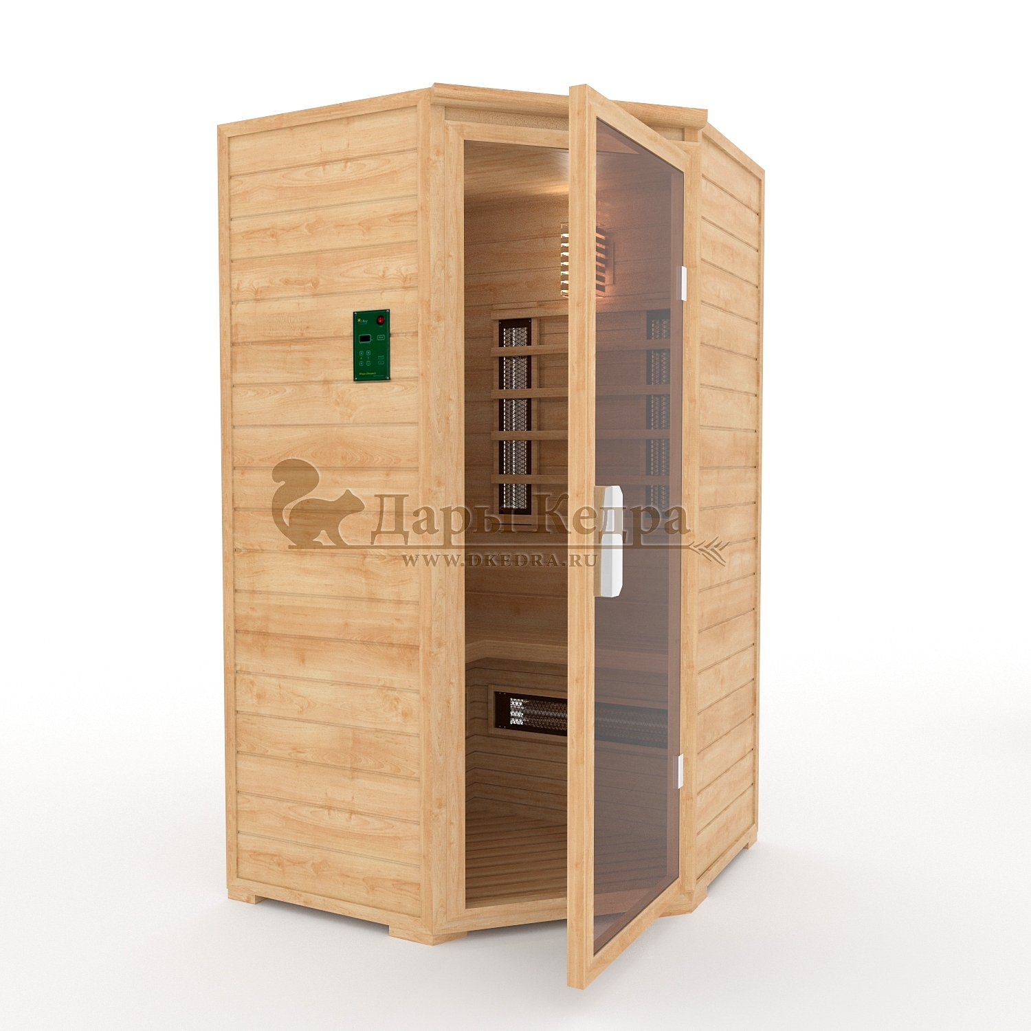 • Одноместная угловая инфракрасная сауна кабина из кедра и липы с карбоновыми излучателями Это специально оборудованная кабина из липы для прогрева тела человека сухим теплом. Воздух в таких парных не нагревается. Инфракрасные лучи воздействуют на тело, равномерно прогревая мышцы, суставы и органы. Карбоновые излучатели, встроенные в стены кабины, обладают мягким прогревом, что полностью исключает возможность ожога. Работает кабина за счет электричества. Установка сауны в угол, позволяет рационально использовать пространство помещения. Подходит как для домашнего использования, так и для коммерции. Обращаем Ваше внимание что в стандартную комплектацию входит трапик для ног, но вы можете его заменить на цельный пол совершенно бесплатно!