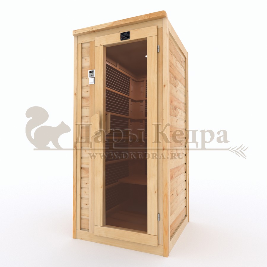 • Одноместная инфракрасная сауна кабина из кедра и липы с керамическими нагревателями Это специально оборудованная кабина из липы для прогрева тела человека сухим теплом. Воздух в таких парных не нагревается. Инфракрасные лучи воздействуют на тело, равномерно прогревая мышцы, суставы и органы. Керамические излучатели похожи на лампы, имеют высокую температуру нагрева, поэтому защищены противоожоговыми решетками. Тело человека в таких саунах нагревается интенсивнее. Работает кабина за счет электричества. Компактная одноместная инфракрасная сауна с керамическими излучателями подойдет как для домашнего использования, так и для коммерции. Обращаем Ваше внимание, что в стандартную комплектацию входит трапик для ног, но вы можете его заменить на цельный пол совершенно бесплатно!