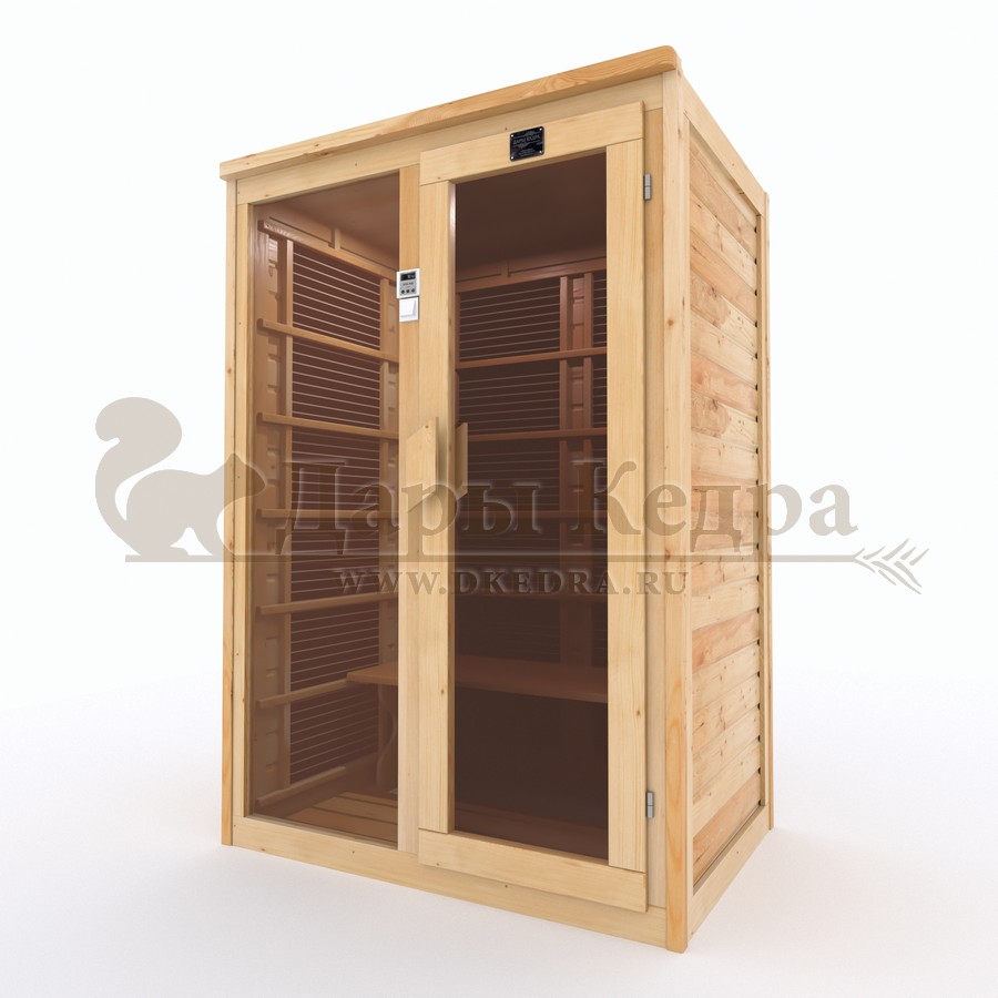 • Двухместная инфракрасная сауна кабина из кедра и липы с керамическими излучателями Это специально оборудованная кабина из липы для прогрева тела человека сухим теплом. Воздух в таких парных не нагревается. Инфракрасные лучи воздействуют на тело, равномерно прогревая мышцы, суставы и органы. Керамические излучатели похожи на лампы, имеют высокую температуру нагрева, поэтому защищены противоожоговыми решетками. Тело человека в таких саунах нагревается интенсивнее. Работает кабина за счет электричества. Двухместная инфракрасная сауна с керамическими излучателями подойдет как для домашнего использования, так и для коммерции. Обращаем Ваше внимание, что в стандартную комплектацию входит трапик для ног, но вы можете его заменить на цельный пол совершенно бесплатно!