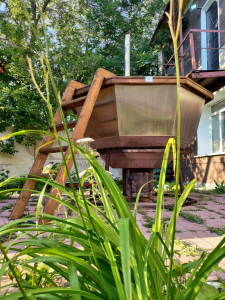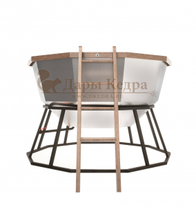 Банный чан на подставке изготовлен из пищевой стали. Представляет собой большую ёмкость в виде чаши, при нагревании которой можно париться на свежем воздухе. Чан установлен на устойчивую металлическую подставку и оборудован кедровым бортом, скамейками, подспинниками, трапом для ног и приставной лестницей. Нагревание банного чана происходит от обычного костра. Если оборудовать данную модель печью, то банные процедуры можно принимать даже зимой.