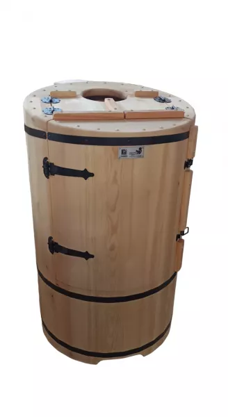 Бондарная фитобочка имеет такое название, потому что выполнена по старинной технологии в шип-паз, без использования каких-либо иных дополнительных скрепляющих элементов. Производственное оборудования позволило для круглых бочек применить лунный паз глубиной 2.5 см, который имеет надежное прилегание досок друг к другу, скрепляя бочку плотно, не пропуская пар и имеет вид фаски. Кедровая Фитобочка - это мини парная, которую можно установить в квартире и каждый день использовать в домашних условиях. Настоящая лечебница для здоровья всей семьи. Во время парения человек сидит внутри кедровой бочки, а голова находится снаружи. Благодаря этому исключается перегрев и процедура парения комфортно переносится пожилыми людьми и детьми.