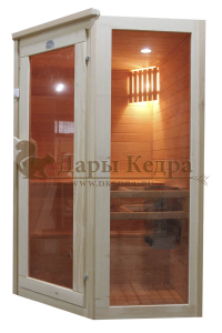 Двухместная угловая финская сауна кабина из кедра и липы с электрокаменкой