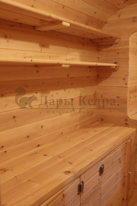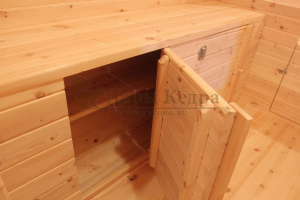 При обустройстве кемпинг-домов и габаритных бань (эксплуатация в качестве летнего домика) обратите внимание на шкаф, он точно вам пригодится для размещения вещей. Внутри - полки и штанга для аккуратного размещения одежды. Высота - 1,8 м, ширина - 0,9 м, глубина - 0,45 м.
